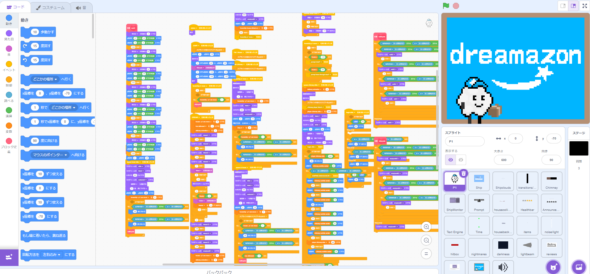 あらかじめ用意されているブロックを使ってゲームなどを作ることができるよ。